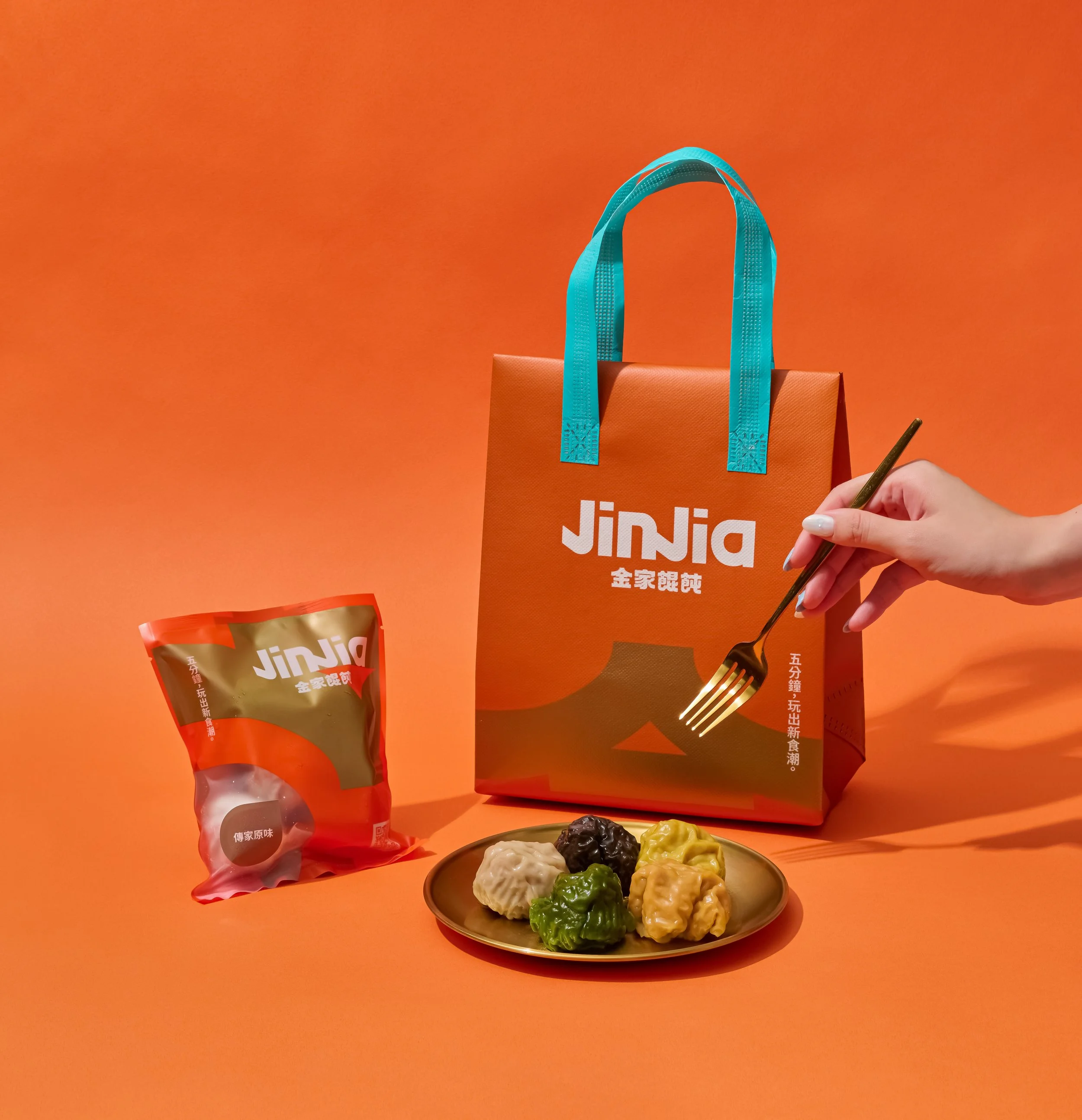 framed by the vibrant JINJIA orange, a symbol of warmth and appetite.